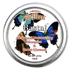 BASTA! in Italian means "ENOUGH!" A "glamour" is something that misdirects through enchantment. So, if you've had enough of mosquitoes and other flying pests, but don't want to use harsh chemical repellents, just say BASTA! BASTA! IS NOT A REPELLENT OR A PESTICIDE. BASTA! is an all-natural skin-nourishing and moisturizing preparation that just makes it harder for the bugs to find you! And although BASTA! is concentrated, it's gentle enough to use on small children. BASTA!'s 1.6-oz container will outlast most of those other 4-, 6-, or even 8- oz liquid all-"natural" repellents. (We say "most" because we haven't tested them all, yet!) Speaking of "natural," just look at the list of ingredients on some of those other "natural" products. Oh, that's right — you can't. Many don't list all of their ingredients. (What, exactly, are they hiding?) And the ones that do show them can be more than a little scary. Now, look at our ingredients: Italian Olive Oil, Mineral Water, Unbleached Beeswax, Proprietary Essential Botanical Fragrance Oil Blend, Natural Vitamin E, Vitamin C, Potassium Sorbate (a natural food preservative found in Rowan Berries), and Nothing Else! Not a pesticide or insecticide in the bunch! Now, which would you rather have on your child's skin? On top of all that, BASTA! has a refreshing eucalyptus and lemongrass herbal scent. You'll love the smell as much as the mosquitoes hate it. That's reason enough to discontinue repellents and insecticides! Finally, many of those other "natural" insect repellents say they last "up to" 6 hrs. Fat chance. BASTA! last as long or longer than those "natural" insect repellents; we just refuse to make ridiculous claims about how long it lasts. And don't forget, all Colannino's Sicilian products always carry our 100% full-satisfaction, 30-day money-back guarantee.* So, if you want the best, most powerful all-natural moisturizing and skin-nourishing Mosquito & Insect Glamour for you and your family, just cry BASTA!